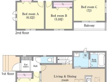 千代田・常磐緩行線「北小金」 バス6分 「小金原五丁目」バス停徒歩5分 千葉県松戸市八ケ崎3丁目